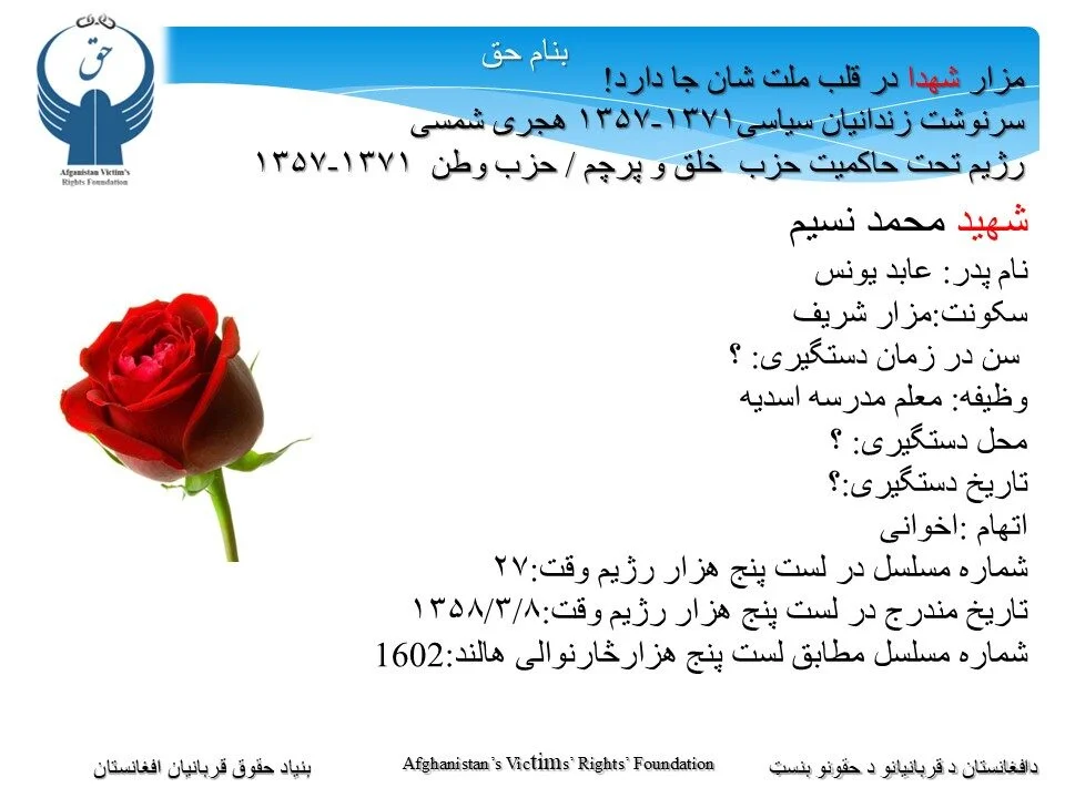 شماره مسلسل در لست پنج هزار رژیم وقت:۲۷